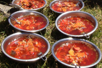 Кружки и миски с двойными стенками. Стол в лесу или в горах не ставят, посуду держат в руках. Термомиска не обжигает пальцы.