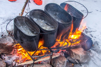 Но сварить кашу в большом котле могут не все. Если жар слишком сильный, каша пригорает. Поэтому крупу запускают в кипяток, закрывают крышкой, ставят на угли или подвешивают над прогоревшим костром. Каша томится, как в печи.