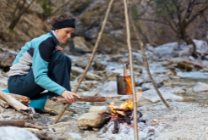 Опору под котелок сооружают из камней. На камнях, нагретых пламенем костра, можно запекать в фольге овощи и рыбу.