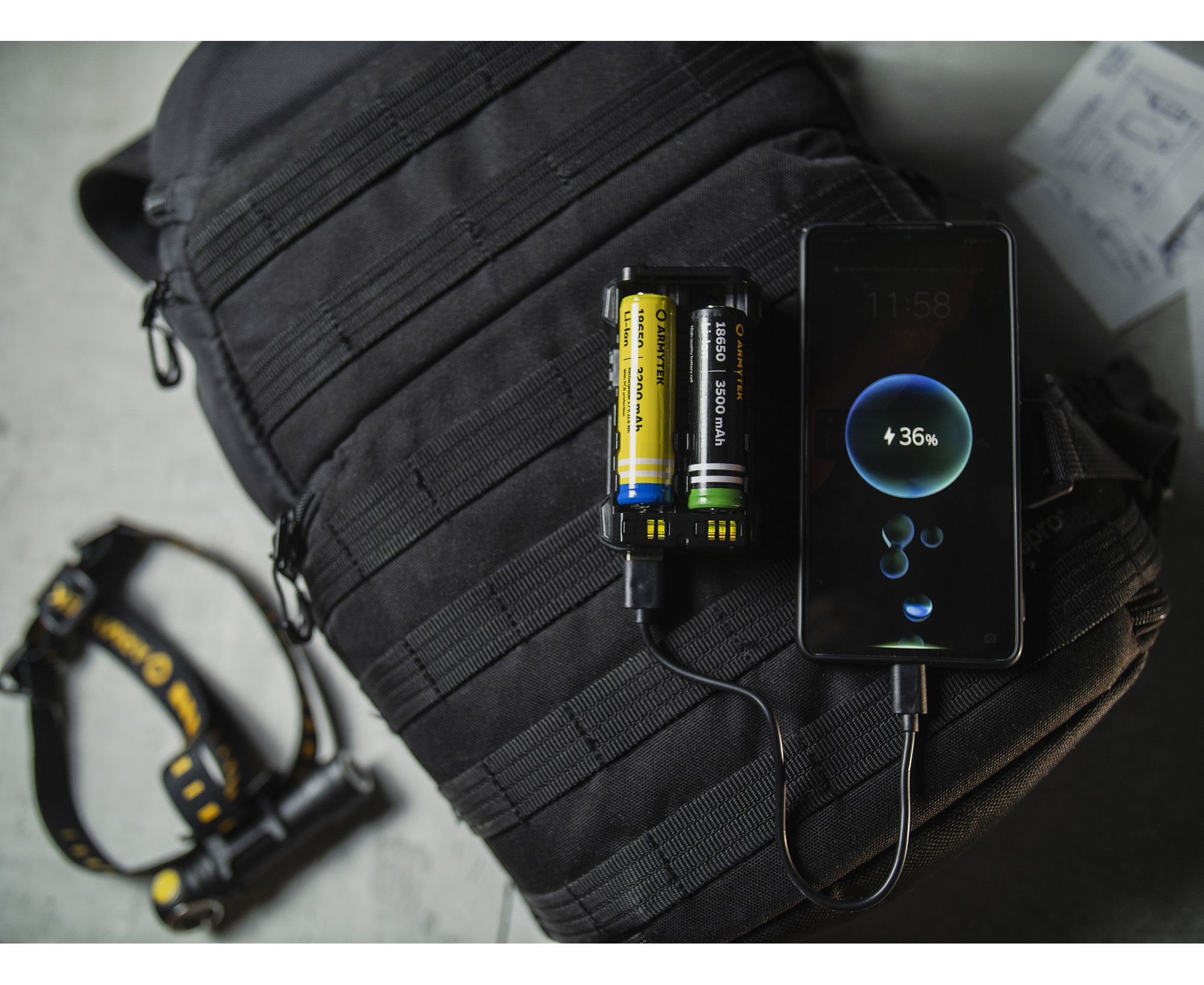 Встроенный Powerbank поддерживает устройства с зарядным током до 2.5А