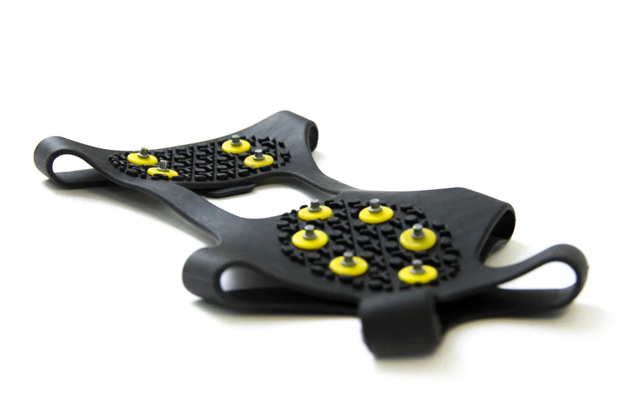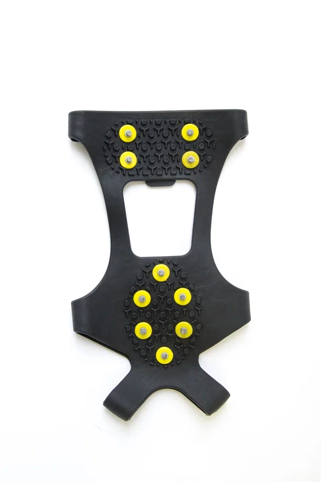 Антигололед имеет овальную форму, надевается на пятку и на носок. Сделан из прочной резины, которая хорошо тянется.