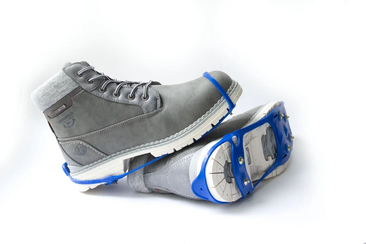 Антигололед имеет овальную форму, надевается на пятку и на носок.
