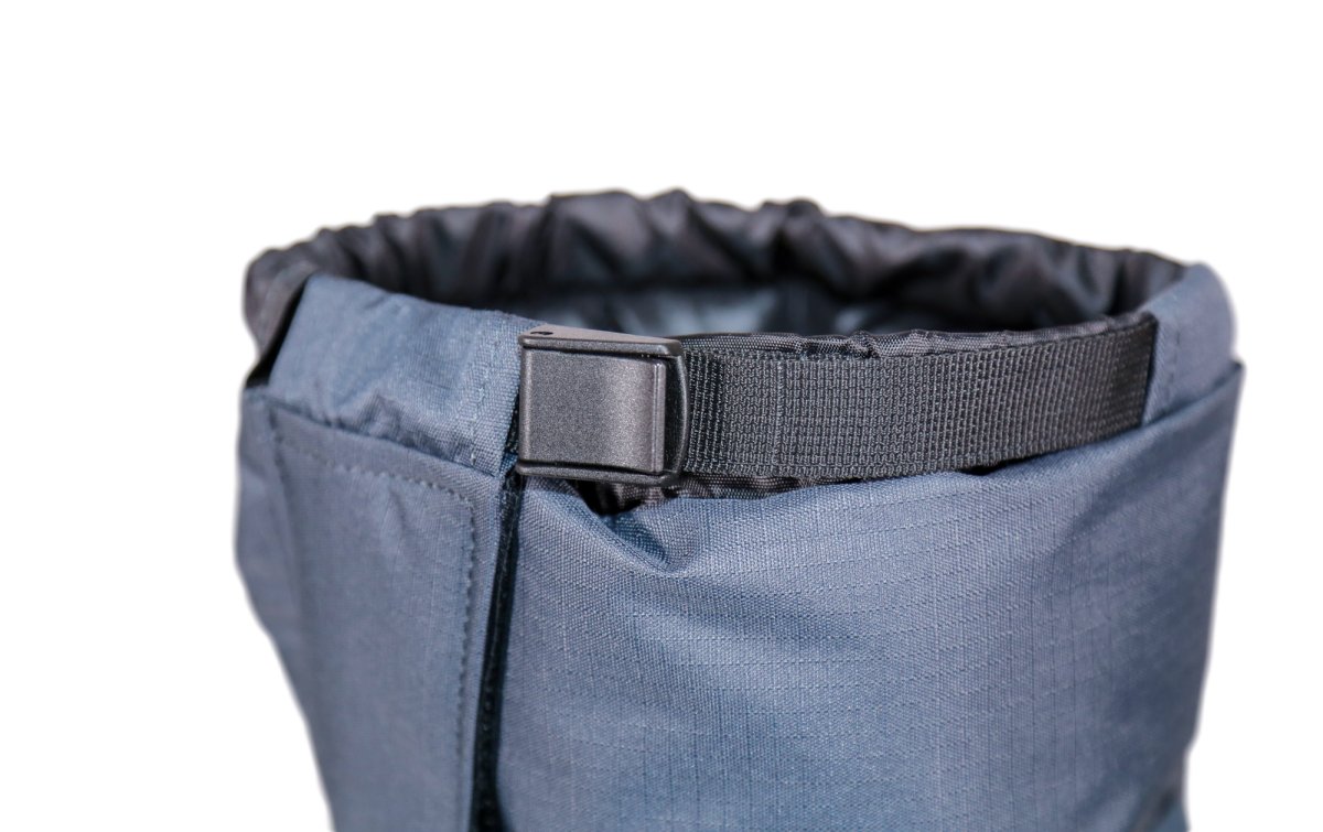 - Верх бахил выполнен из прочной ткани Oxford 300D PU R/S, усиленная молния, лента Velcro повышенного качества, фурнитура Duraflex - все это позволяет бахилам максимально хорошо работать в сложных походных условиях