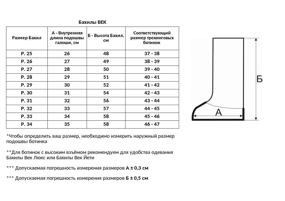 Размеры галош: с 25 по 34