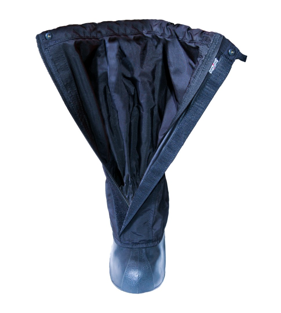 - Спереди прочная усиленная молния, защищенная клапаном с сплошной застежкой Velcro. Это облегчает одевание бахил на ботинки с высоким взъёмом. Внутри галоши на пятке вшита петля, которая так же облегчает одевание бахил на ботинок
