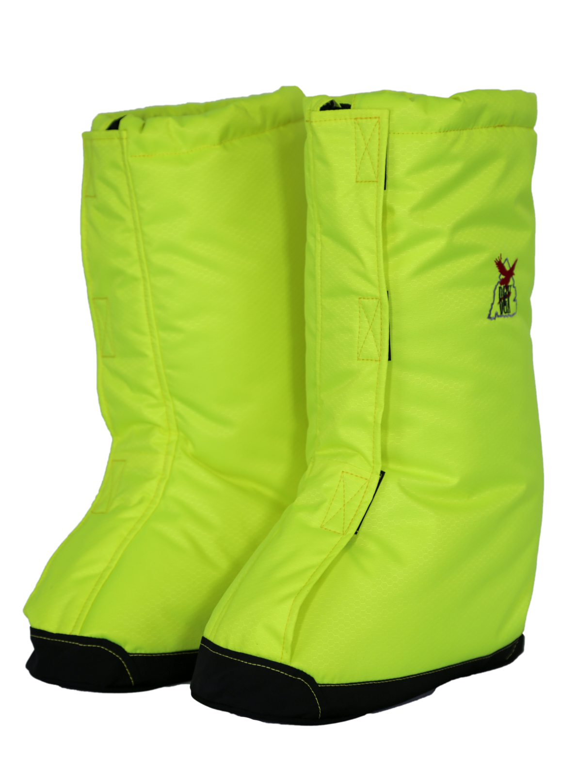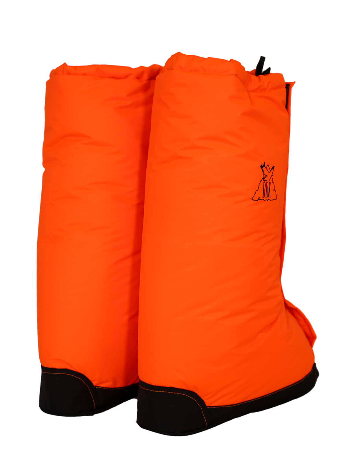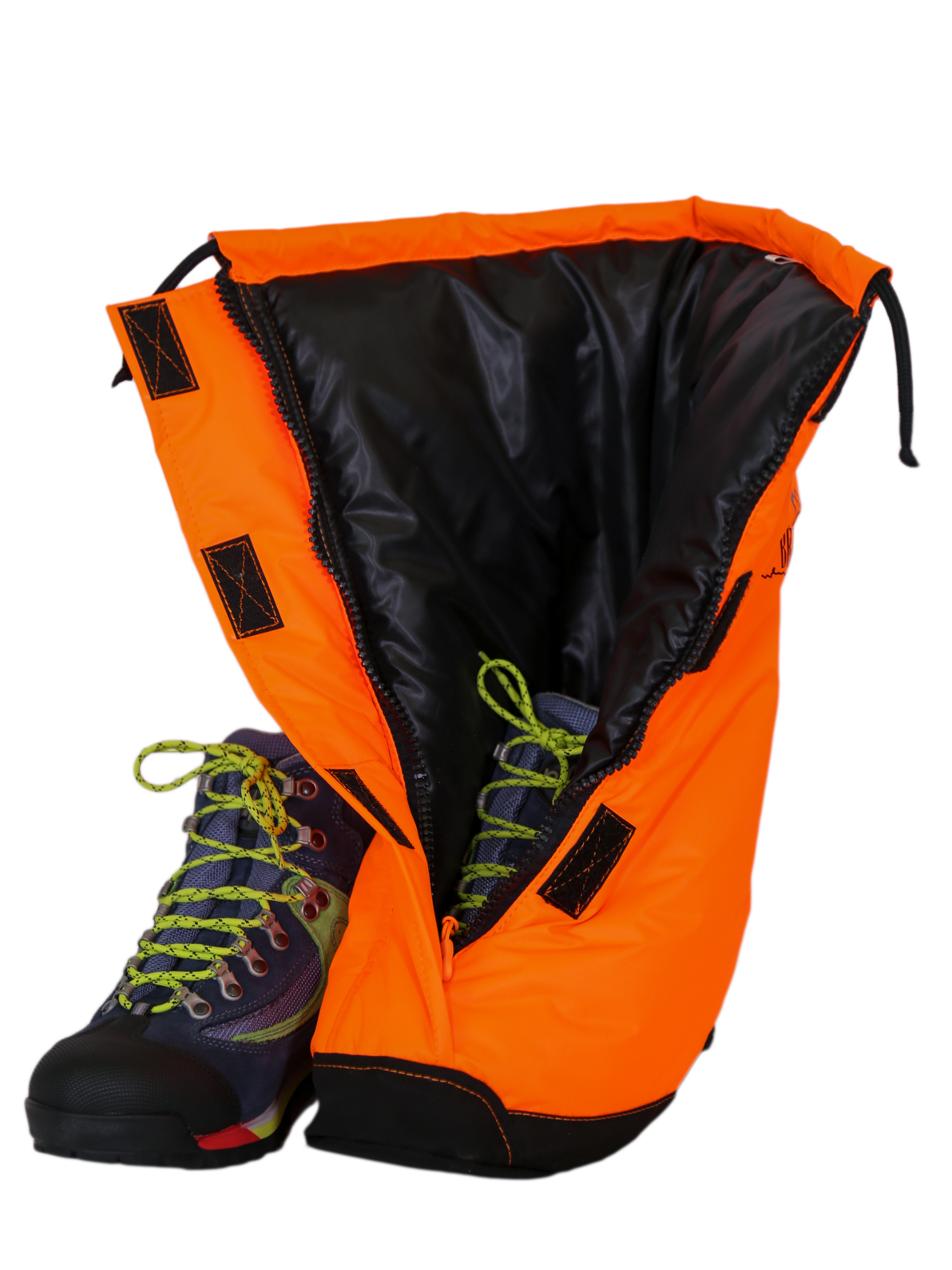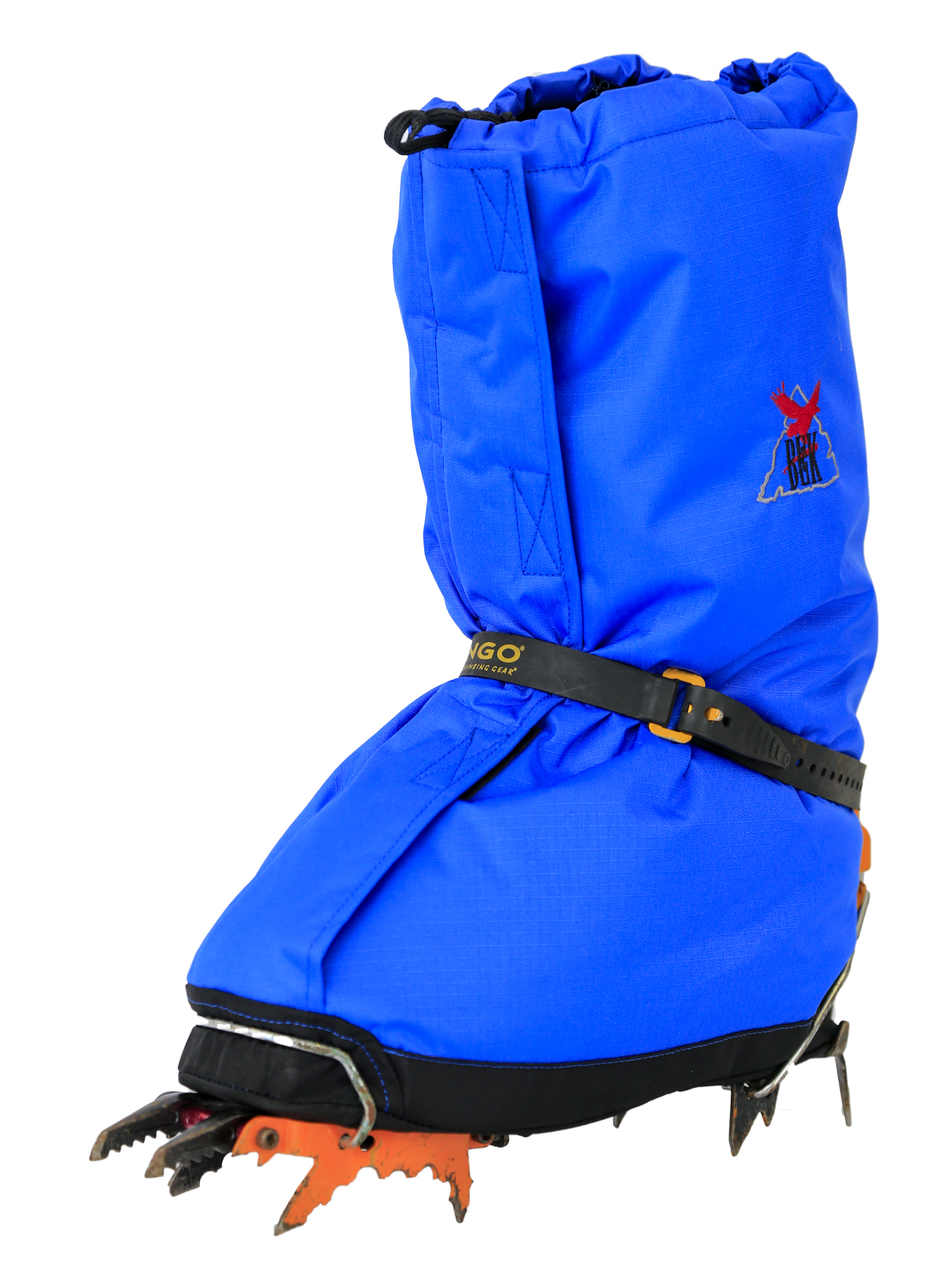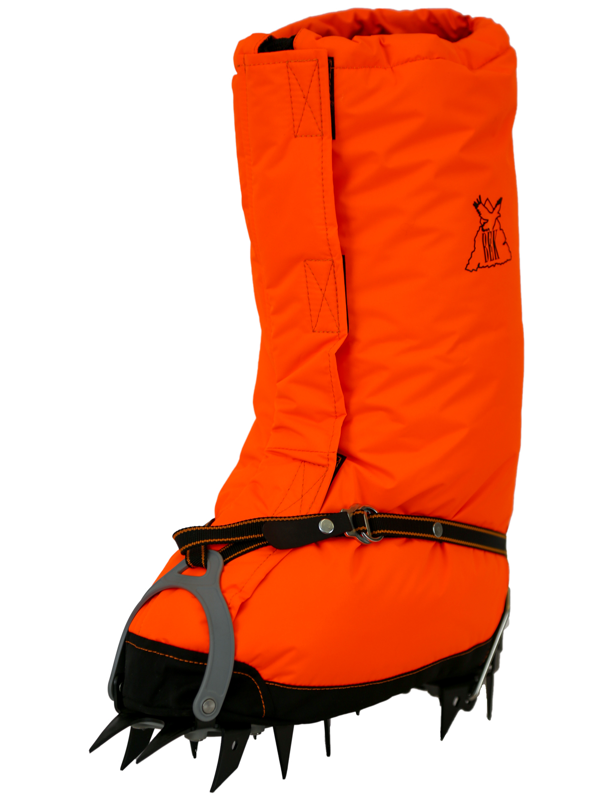 - На носке и пятке вставки из прочной ткани Авизент без утеплителя, это позволяет фиксировать горнолыжные ботинки с бахилами в горнолыжных креплениях, а также позволяет использовать бахилы с любыми типами альпинистских кошек. Отсутствие утеплителя на носке и пятке это вынужденная мера, которая не влияет на утепление ботинка