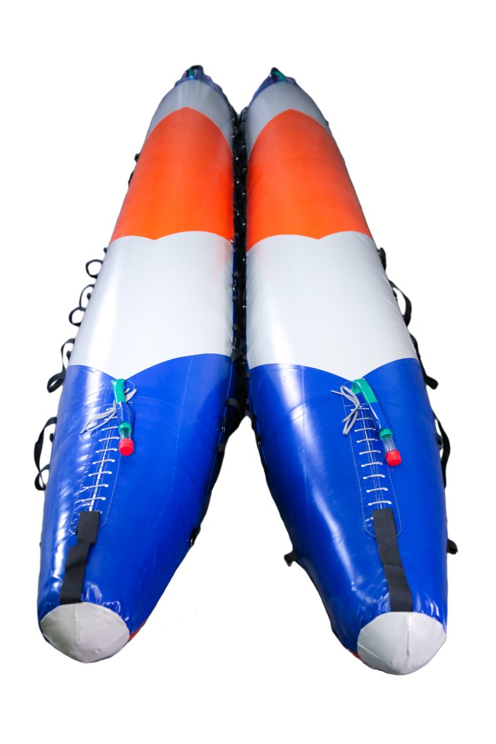 2. Кроме петель из стропы на боковых сторонах наружных чехлов дополнительно расположены металлические варные полукольца для шнуровки и закрепления рамы к катамарану. Данная система прикрепления рамы позволяет устанавливать на катамаран раму, сделанную из подручного материала