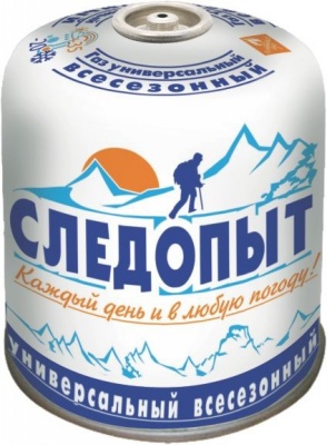 Баллон газ. Следопыт 450 гр для всесезонного применения. Имеет резьбовой тип клапана. Может использоваться без подогрева при низкой температуре благодаря особой пропорции газов в составе.