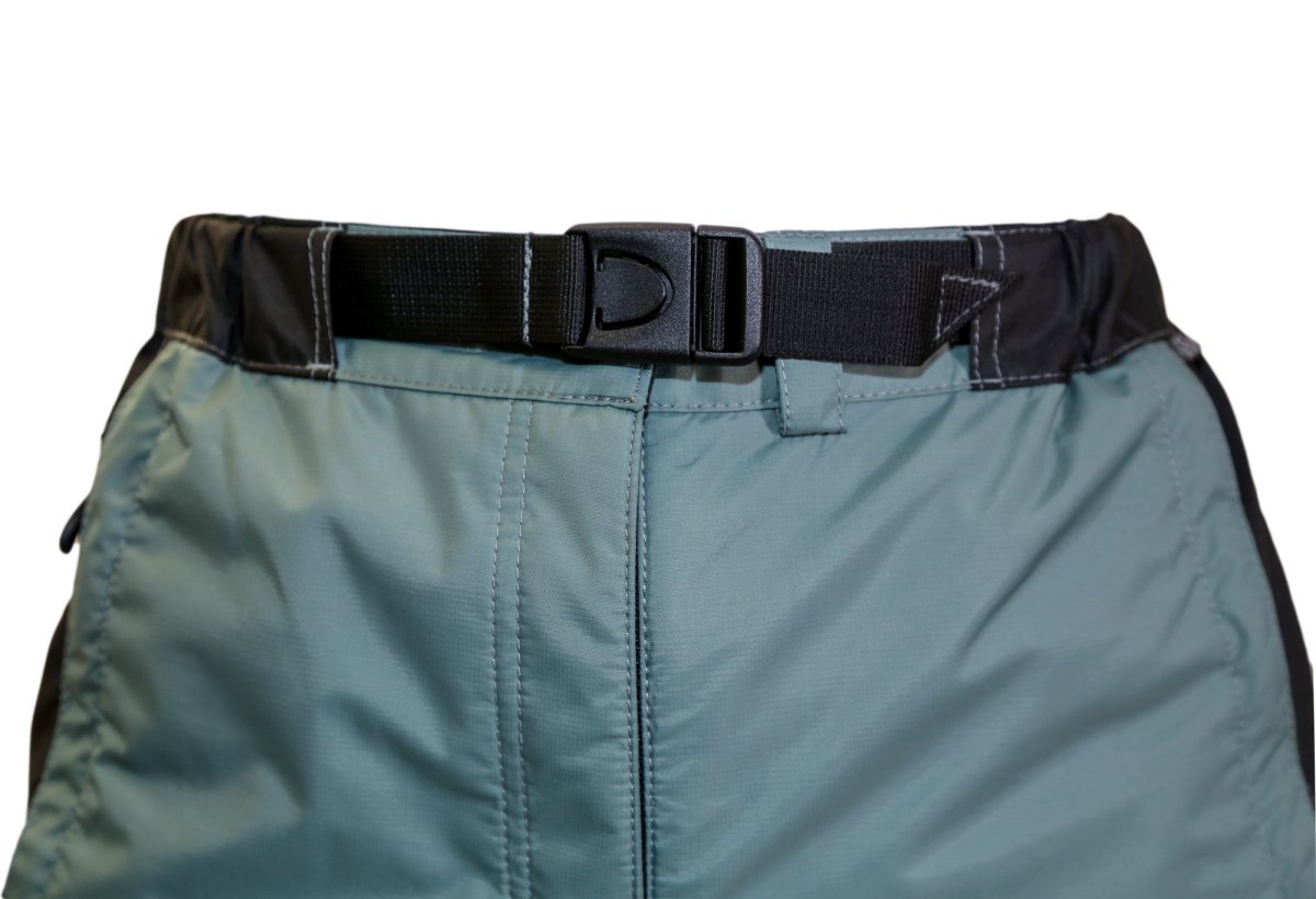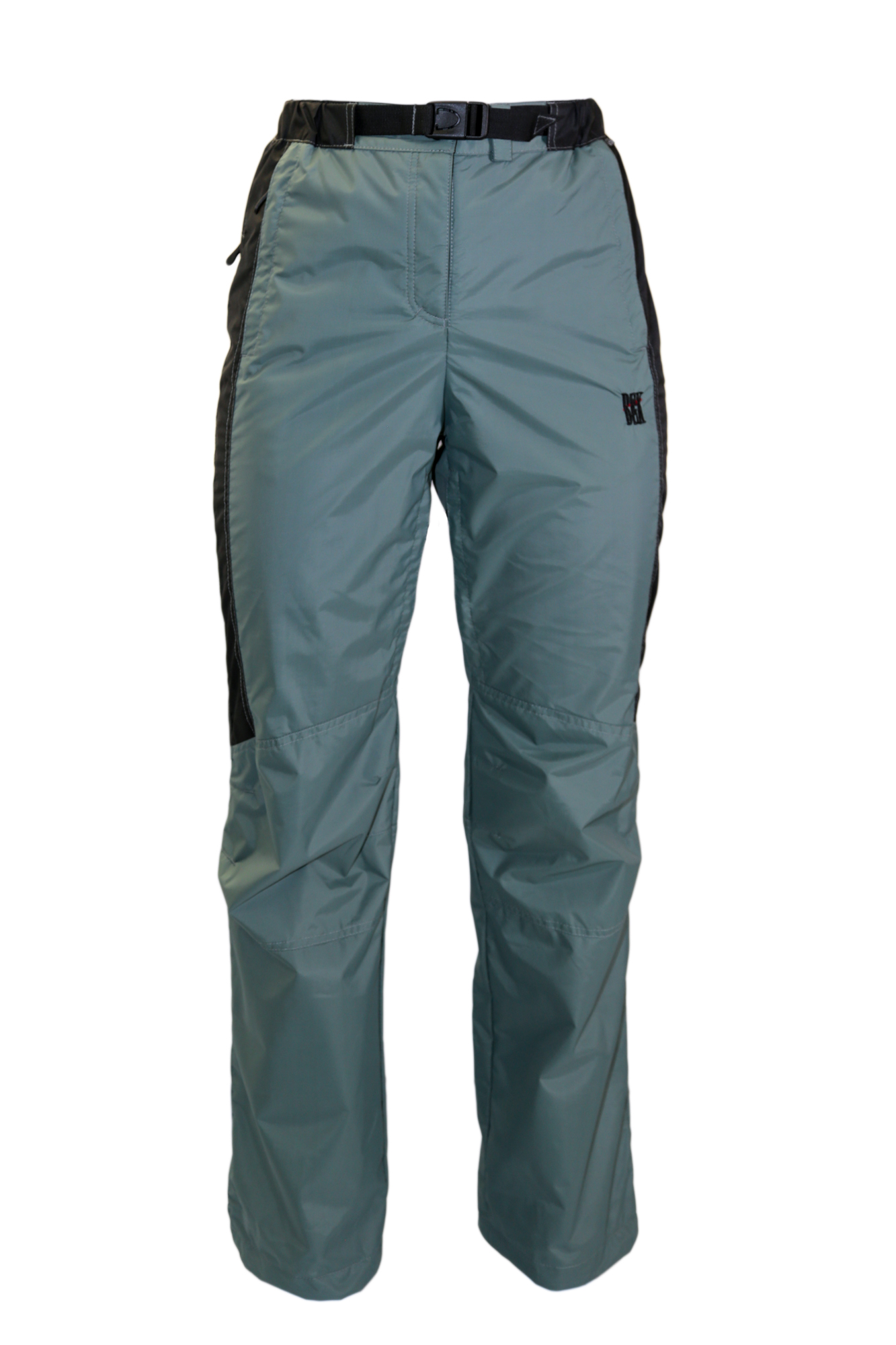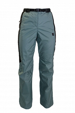 Женские брюки из легкой дышащей мембранной ткани. Прямой покрой, плотно прилегающий засчет резинок пояс, ремень для дополнительной регулировки объема.