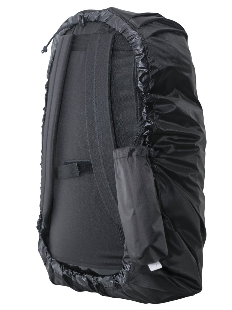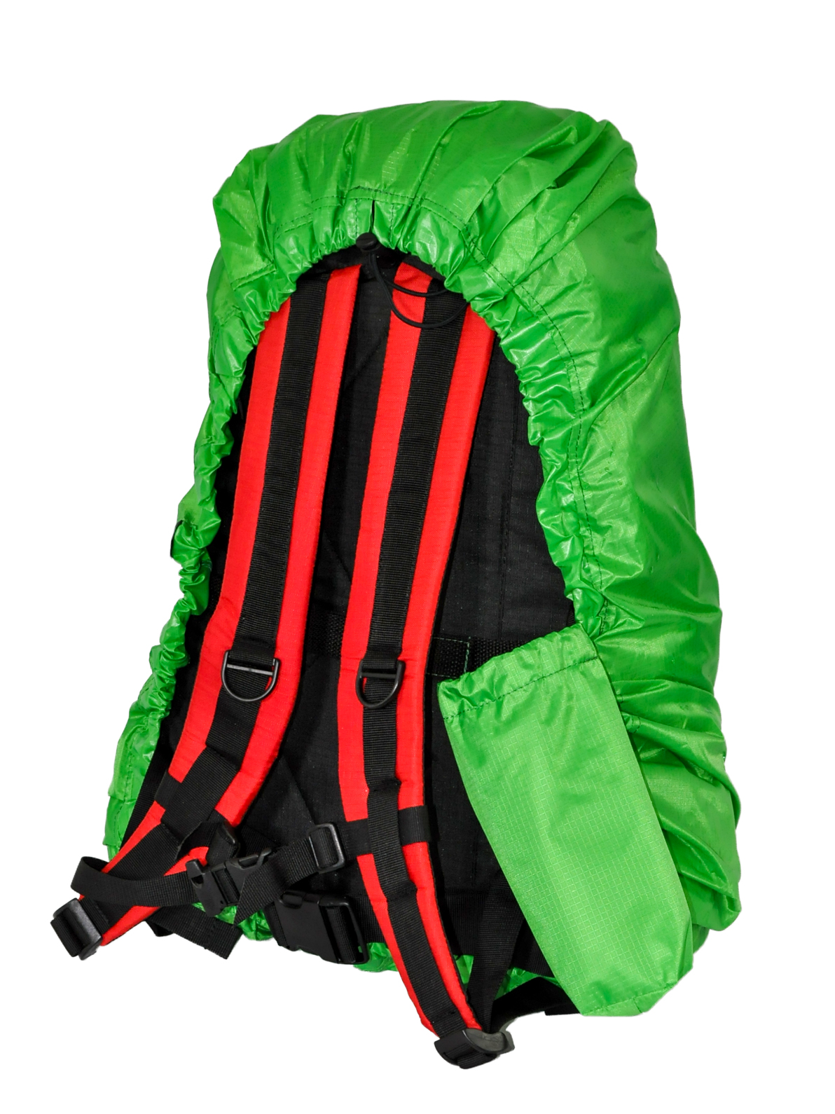 - Закрепляется на рюкзаке 10-30л при помощи эластичного шнура с фиксатором, пропущенного по краю чехла и стропы с застежкой Velcro
