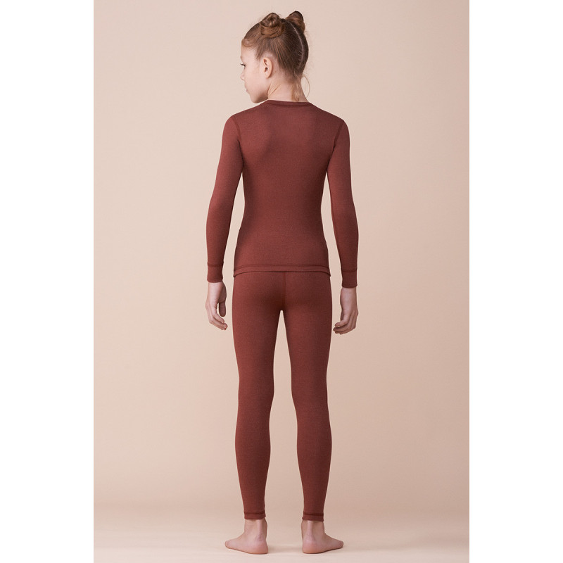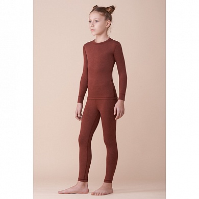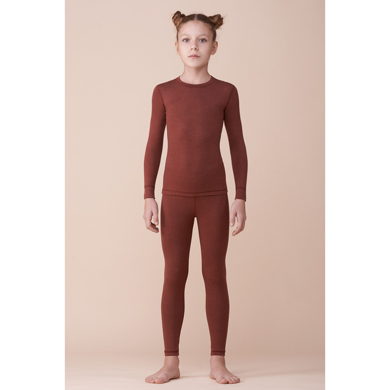 Термокостюм для девочек состоить из футболки и брюк плотно прилегающего к телу кроя. Рукава длинные, швы плоские. Цвет однотонный.