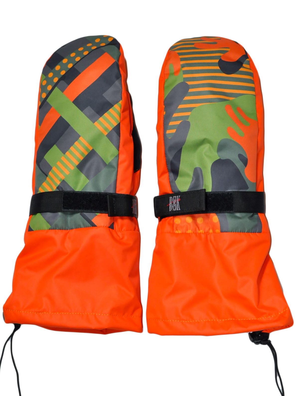 - Наружная сторона рукавицы выполнена из ткани с оригинальным дизайнерским рисунком.