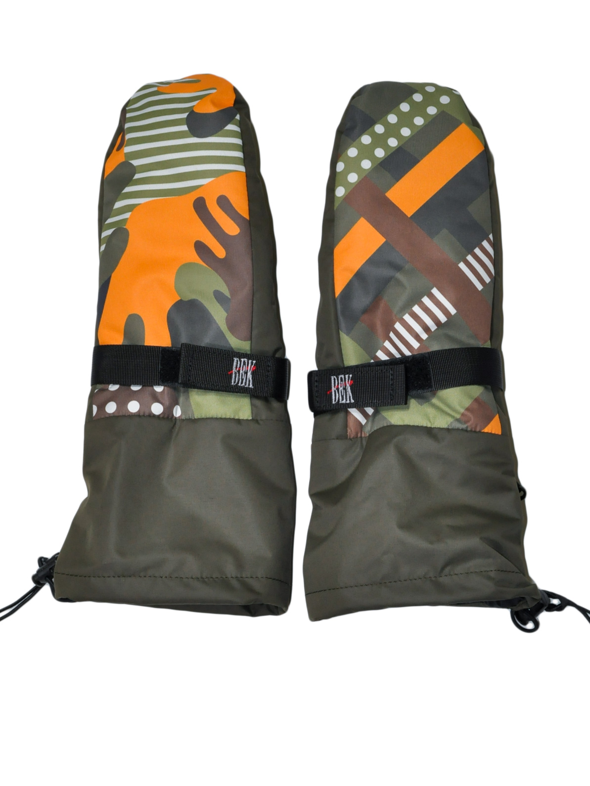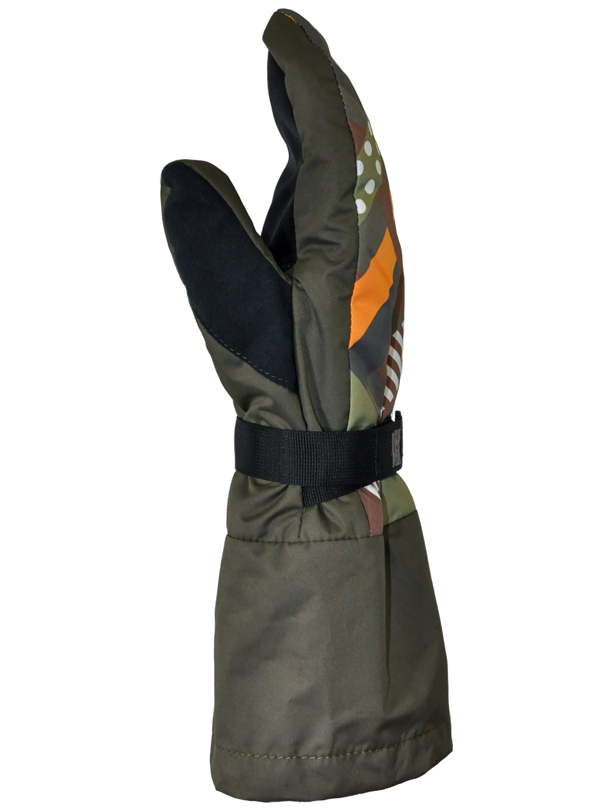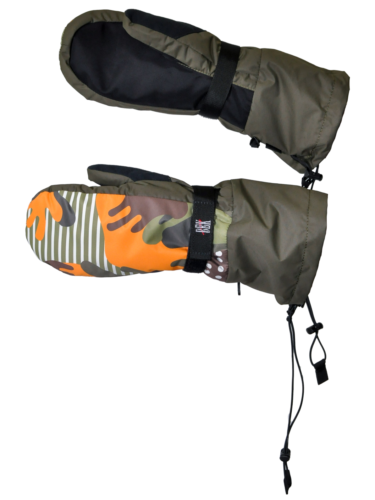 - Наружная сторона рукавицы выполнена из ткани с оригинальным дизайнерским рисунком.