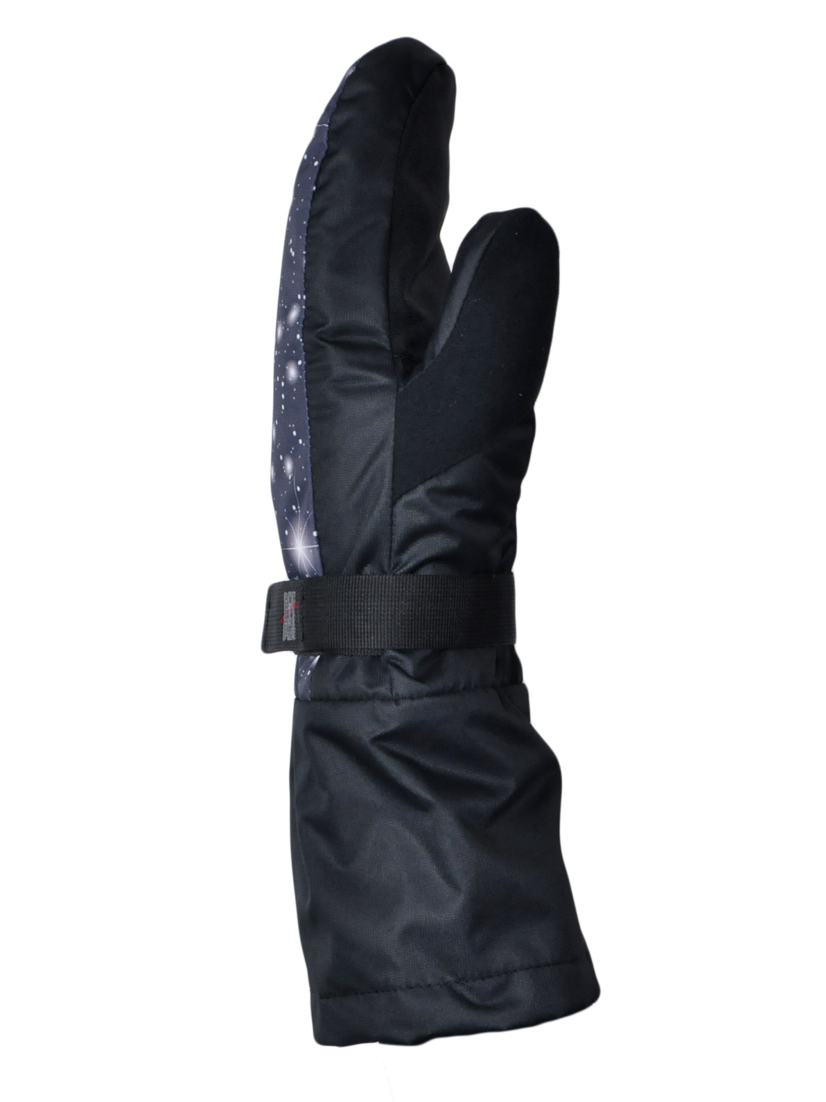 - Наружная сторона рукавицы выполнена из ткани с оригинальным дизайнерским рисунком.
