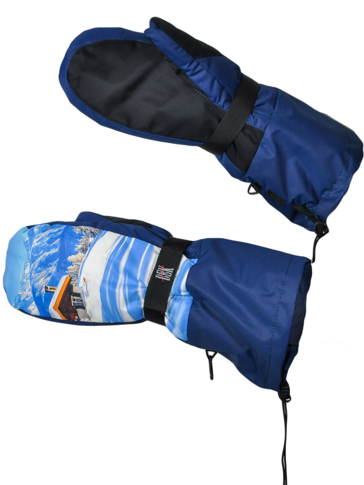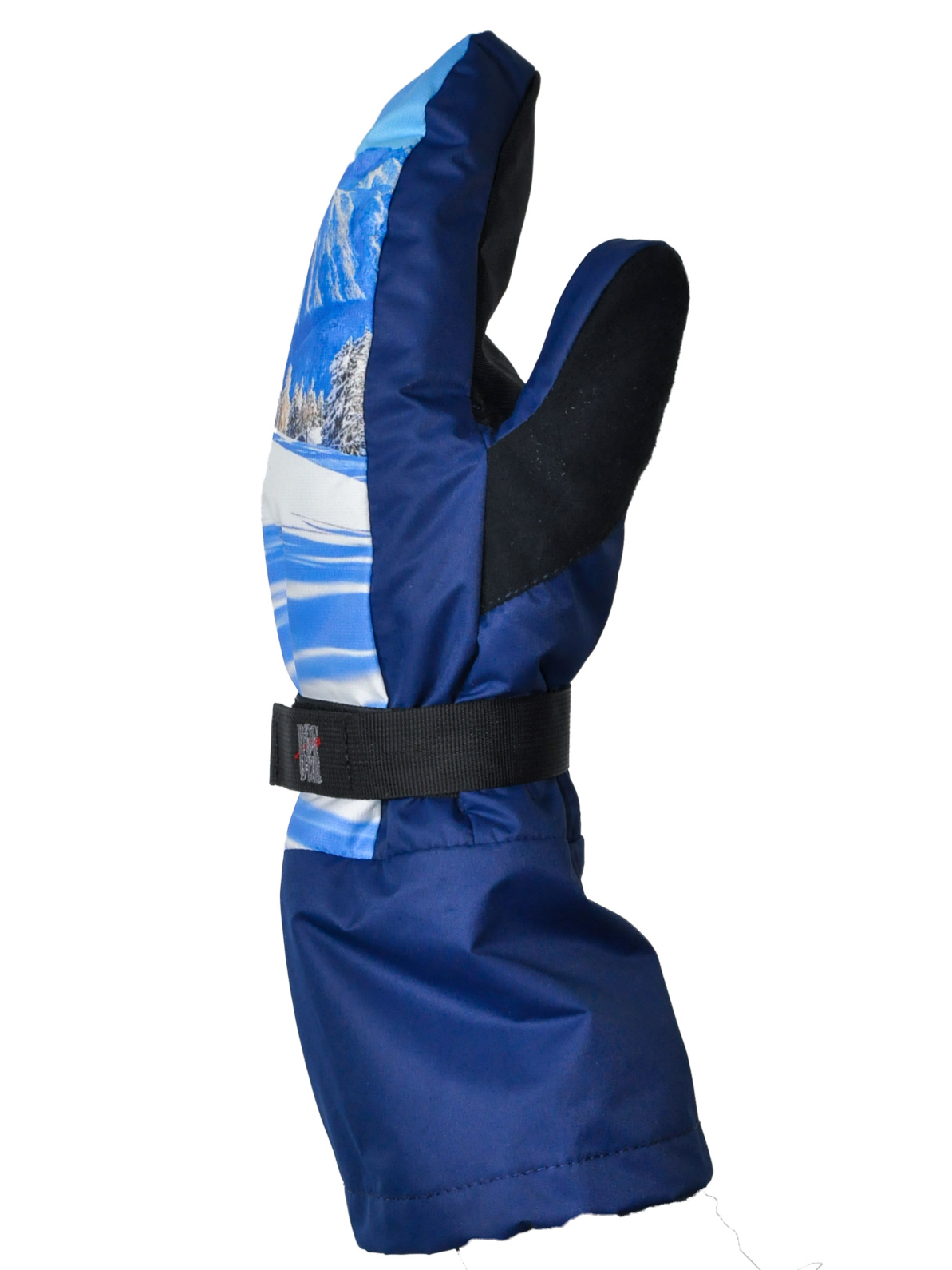 - Рукавицы Фрирайд принт утепленные имеют застежку для фиксации на запястье с лентой Velcro