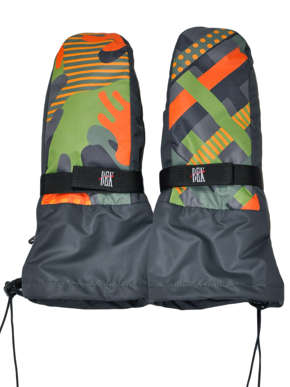 - Наружная сторона рукавицы выполнена из ткани с оригинальным дизайнерским рисунком.