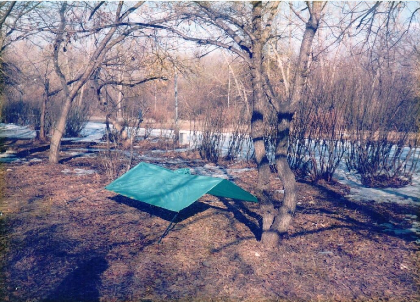 - В развернутом виде может использоваться как тент, по периметру расположены шесть петель для оттяжек.