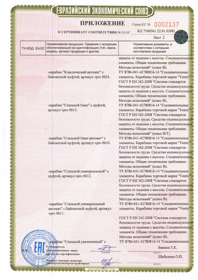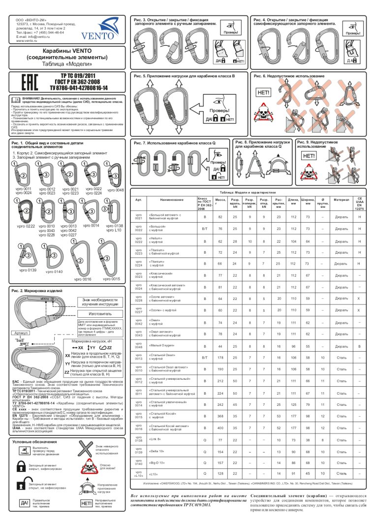 Карабин Vento Классический автомат с байонетной муфтой используется в спорте (альпинизм, скалолазание) или во время проведения промышленных работ на высоте. Муфта-автомат удобна для быстрой блокировки карабина. Форма карабинов обеспечивает высокую прочность изделия при небольшой массе. Такое снаряжение подходит для использования с усами самостраховки, для присоединения веревок и т.п.