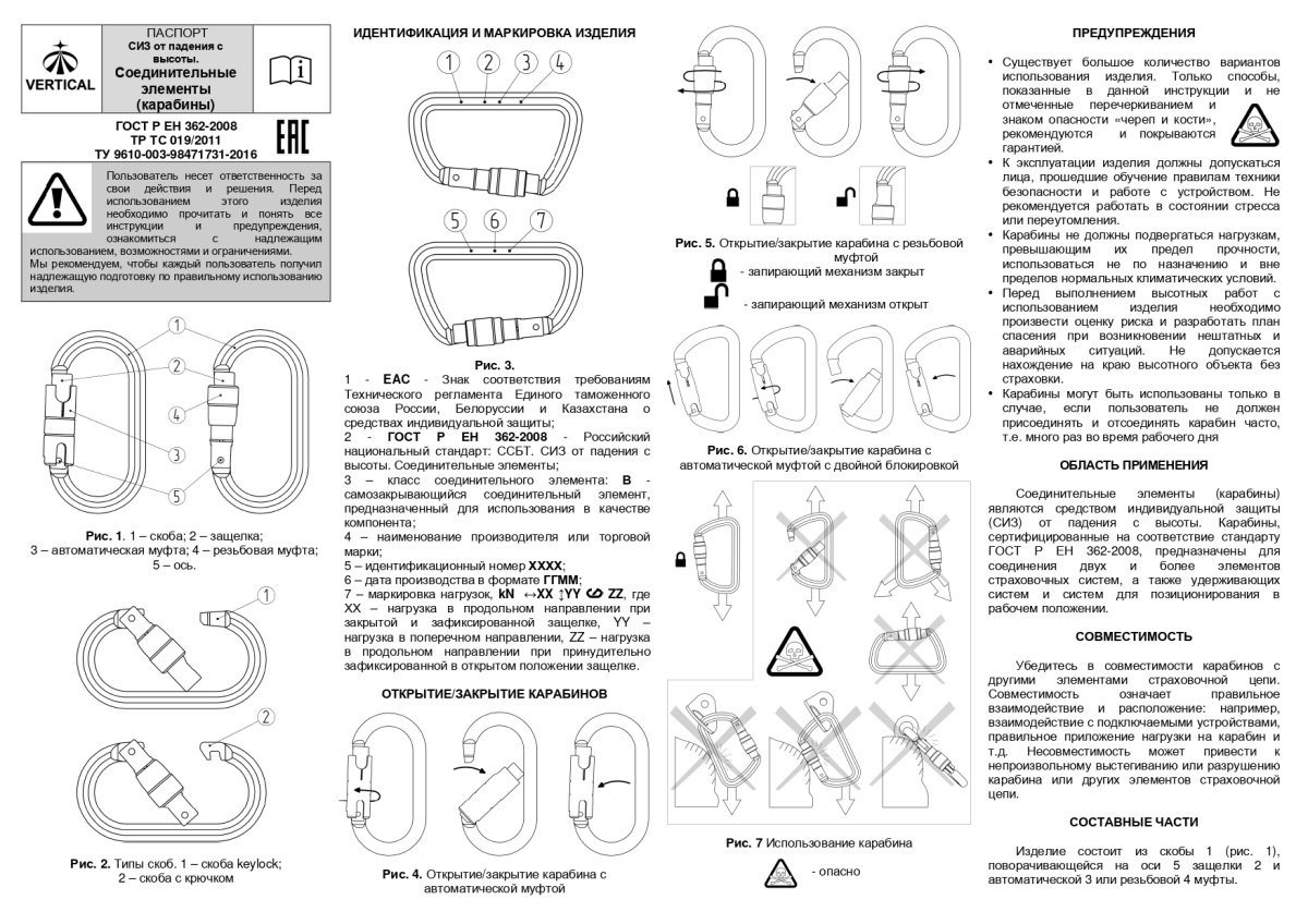 Винтовая муфта максимально снижает риск самопроизвольного раскрытия карабина