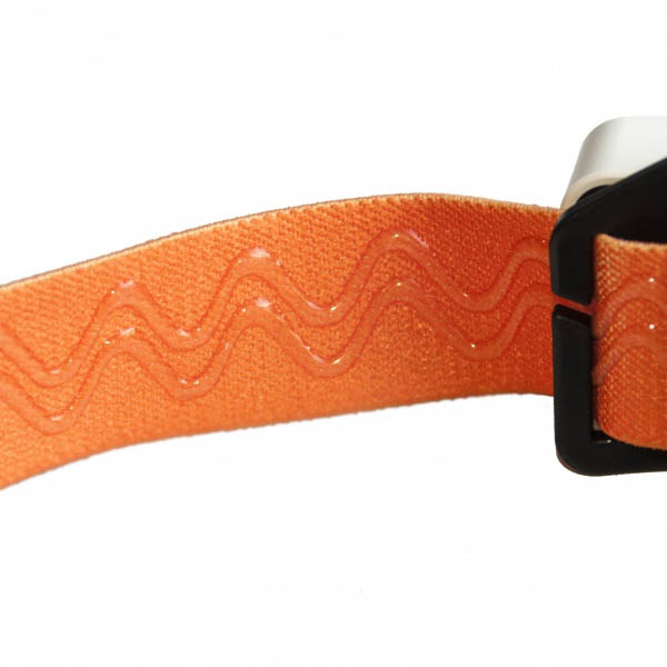 - Лента налобного крепления изнутри обклеена двумя силиконовыми полосами, предотвращающими съезжание фонарика с головы или каски даже если крепление затянуто не сильно.