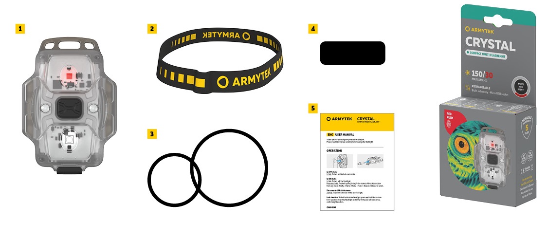 Фонарь работает до 50 дней в режиме минимальной яркости. Дополнительно приобретать и постоянно менять батарейки не нужно: встроенный Li-Pol аккумулятор заряжается с помощью любого Micro USB кабеля. Фонарь занимает минимум пространства в рюкзаке или сумке, освобождая место для других вещей. Модель надежно фиксируется на голове с помощью эластичной ленты и позволяет заниматься любым делом при хорошем освещении. Фонарь может быть закреплен на любом элементе одежды, ремне или шлейке рюкзака для безопасных пеших прогулок в ночное время суток. С помощью специальных силиконовых колец в комплекте Crystal прочно крепится на велосипед, а конструкция корпуса с отверстием под кольцо для ключей позволяет использовать фонарь в качестве стильного аксессуара.