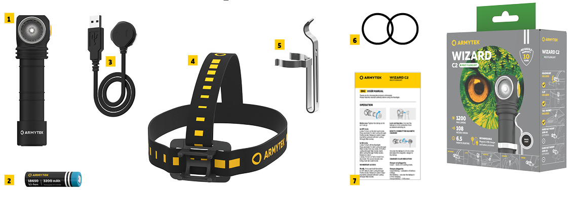 Яркость света данной модели достигает 1120 люмен на расстоянии до 106 метров. Аккумулятор 18650 Li-Ion емкостью 3200 мАч заряжается в фонаре с использованием специального магнитного USB-кабеля. Универсальным Wizard C2 делает возможность нескольких вариантов фиксации: на металлических поверхностях благодаря магниту в задней крышке, на одежде, ремне или сумке с помощью клипсы, на голове в паре с комфортным налобным креплением.