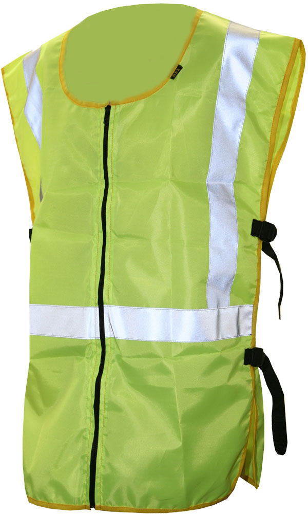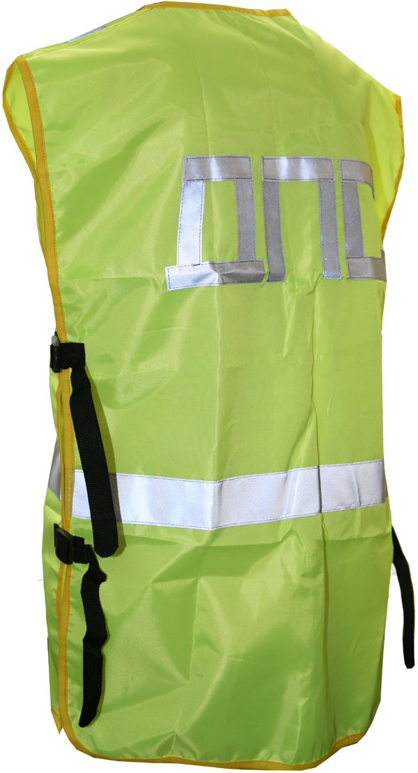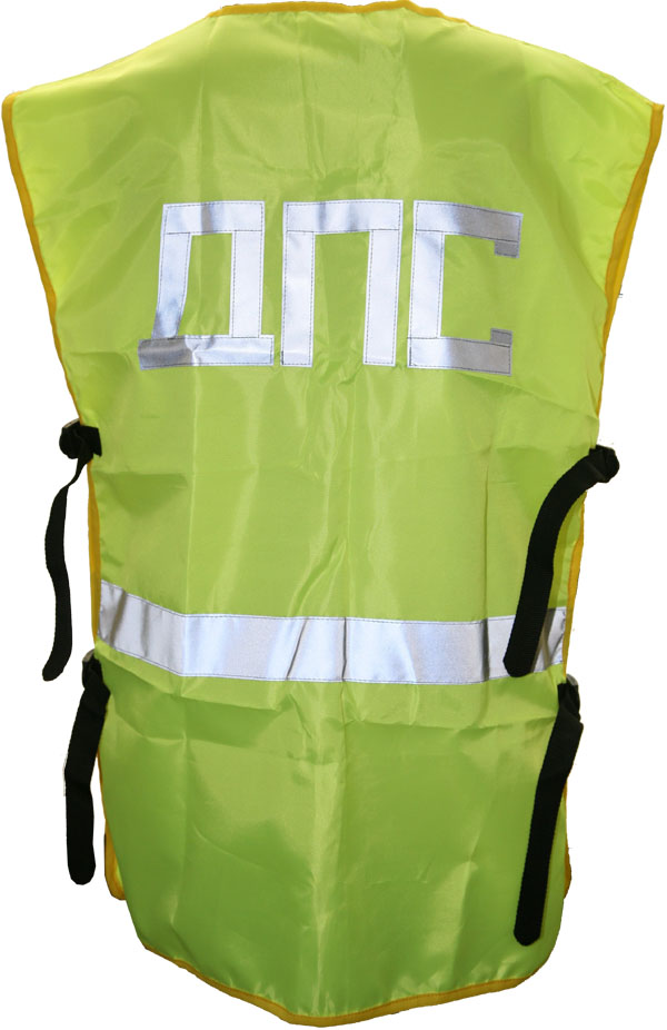 Жилет из яркой флуоресцентной ткани со световозвращающими полосами. Рекомендуется для водителей, дорожных рабочих, муниципальных служб.
