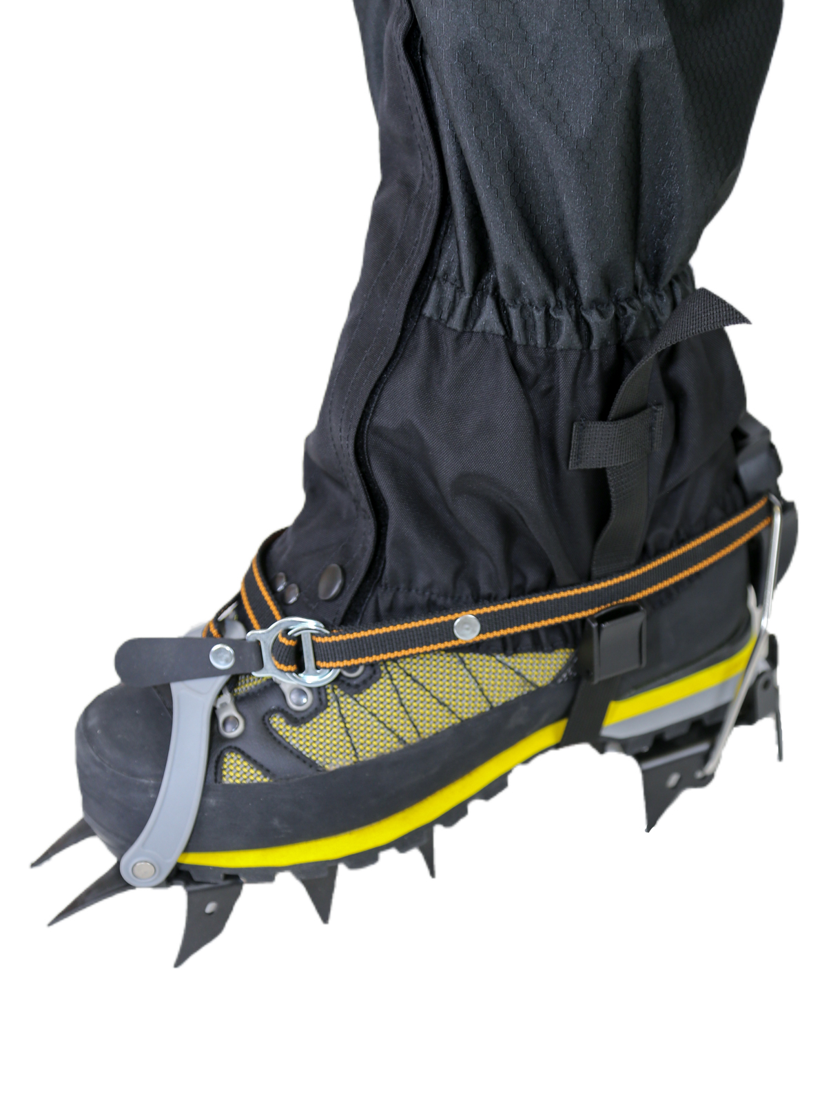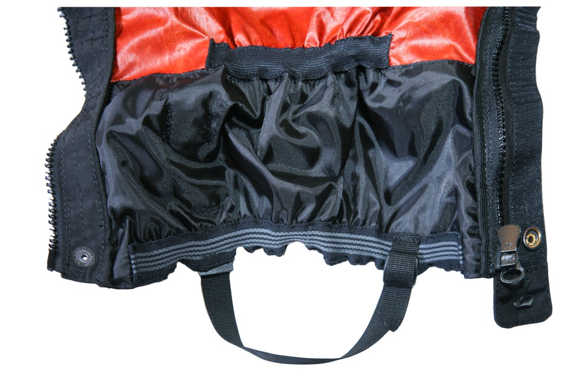 - Нижняя часть Гамаш в области интенсивного трения и проколов зубьями альпинистских кошек выполнена из прочной износоустойчивой ткани Авизент