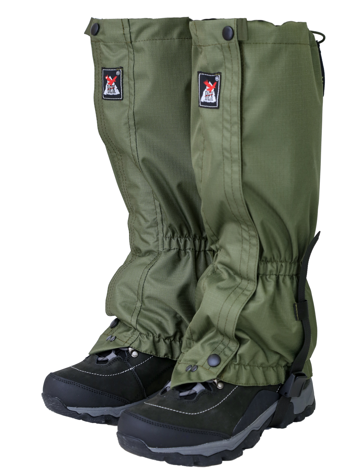 - Гамаши на обувь Охотник крепятся к ботинку передним крючком и регулировочным ремешком из стропы под каблук