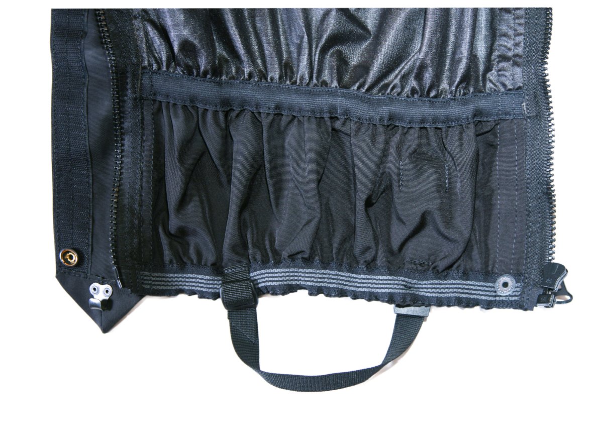 - Нижняя часть Гамаш в области интенсивного трения и проколов зубьями альпинистских кошек выполнена из прочной износоустойчивой ткани Авизент