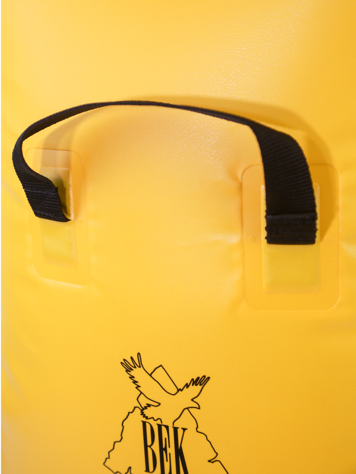 - По мимо размеров, которые рассчитаны как "золотая середина" между высоким и узким гермомешком и низкой и широкой гермосумкой, гермомешок Бегемот имеет две ручки для подъема и переноски из прочной стропы. Они облегчают погрузку и закрепление гермомешка на катамаране