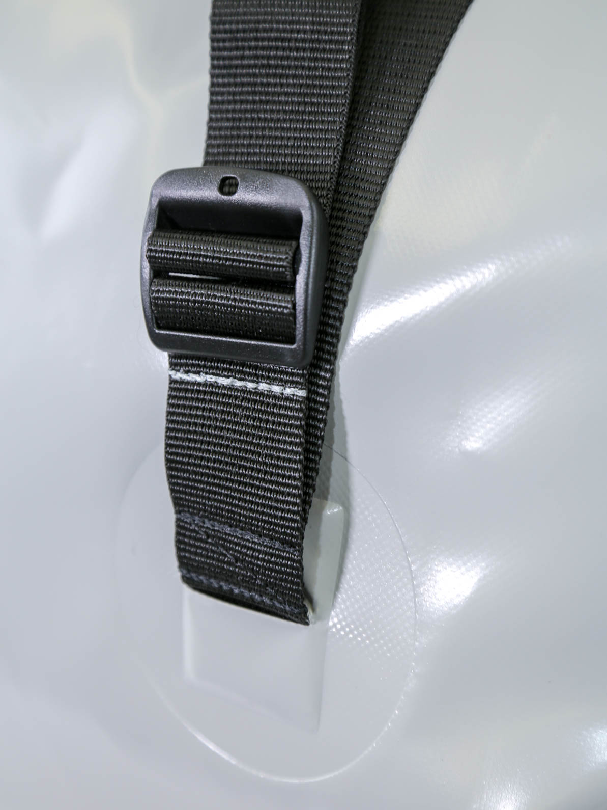 - Вдоль верха сумки пришиты пластиковые ленты, что обеспечивает более плотную скрутку и фиксацию верхней части сумки