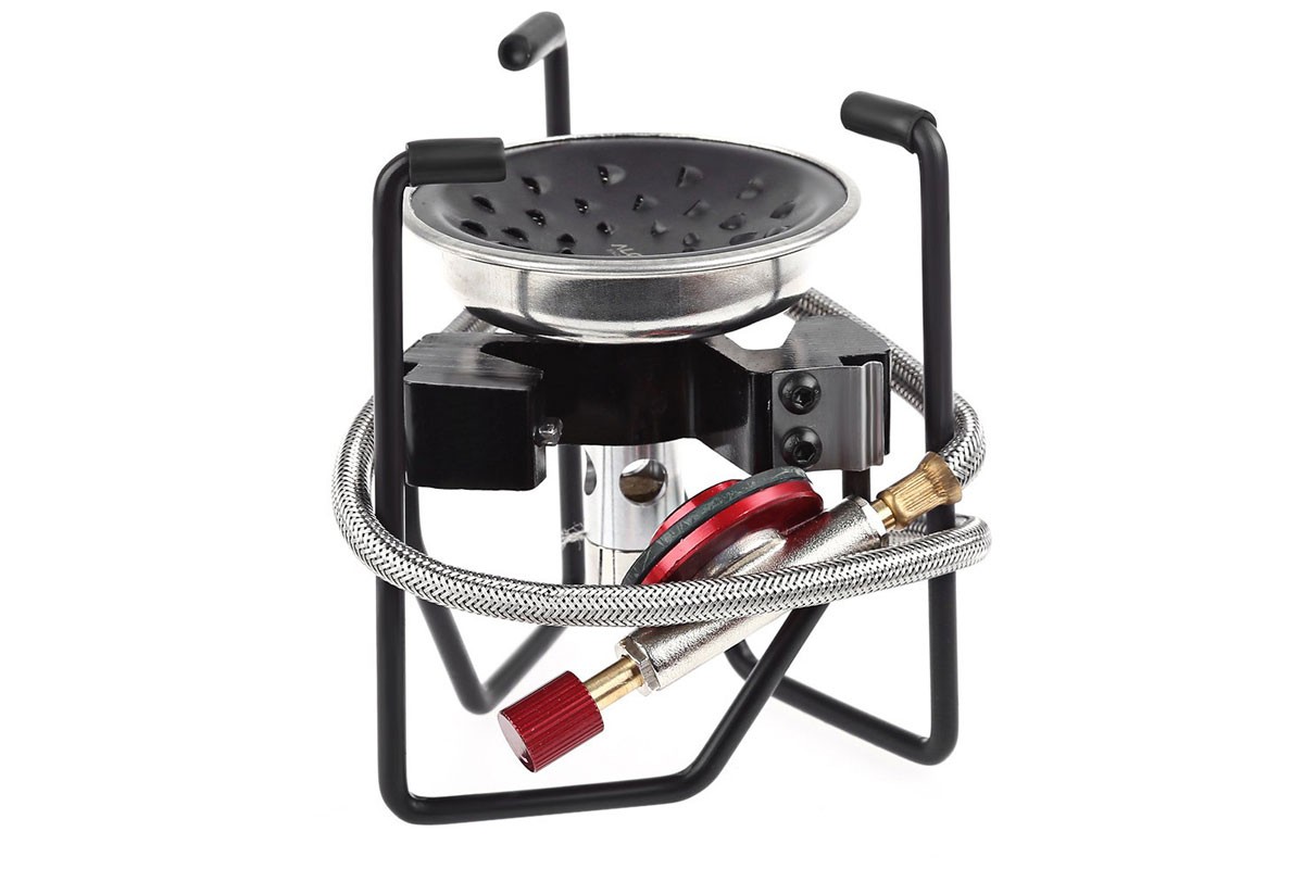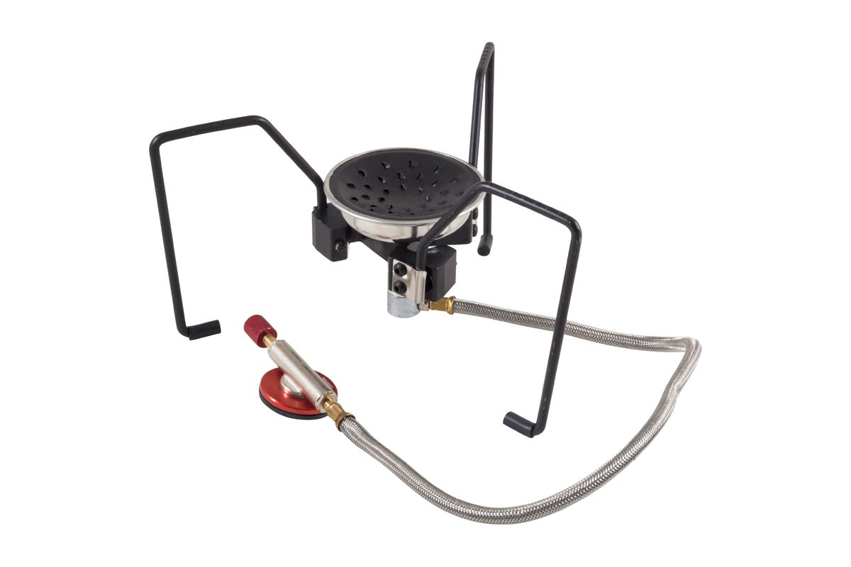 Горелка походная с шлангом и спиралевидным пламенем. Подходит для любой туристической посуды. Нагрузка максимум 14 кг.