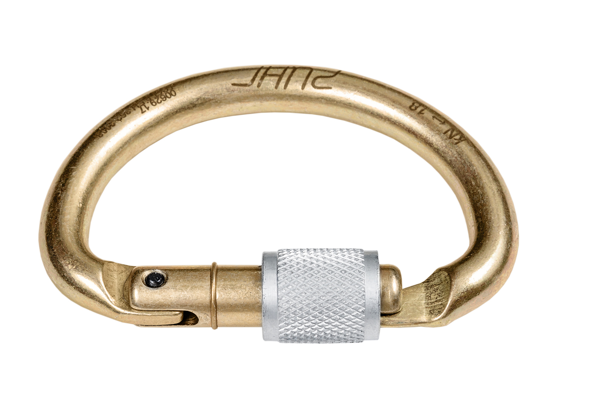 Карабин специально разработанный для блокировки коушей обвязки и присоединения грудного зажима (кроля).