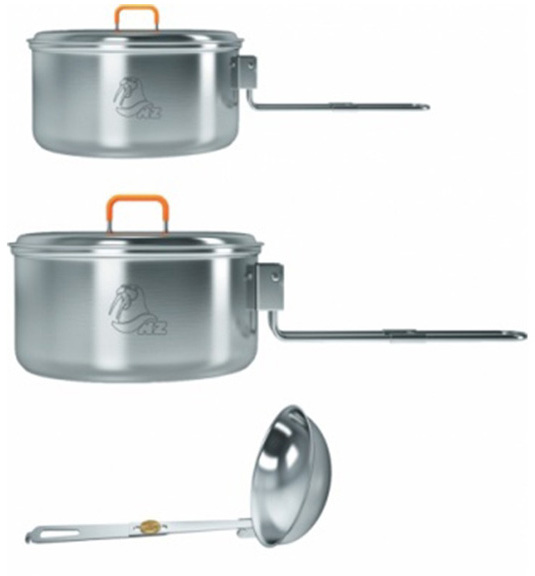 Малый набор посуды, состоящий из двух кастрюль и складного половника, никогда не будет лишним ни в рюкзаке, ни в машине. Он обеспечит горячей едой и питьем одного или двух человек при готовке на горелке или примусе.