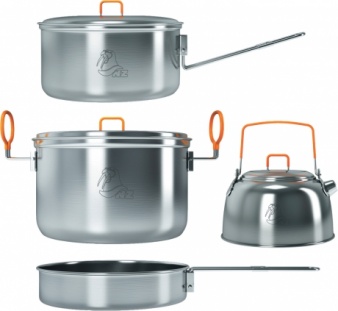 Весь набор компактно складывается в большую кастрюлю и для транспортировки упаковывается в нейлоновый чехол.