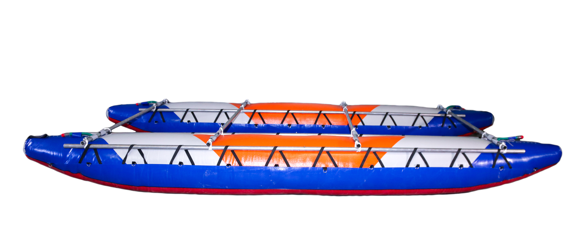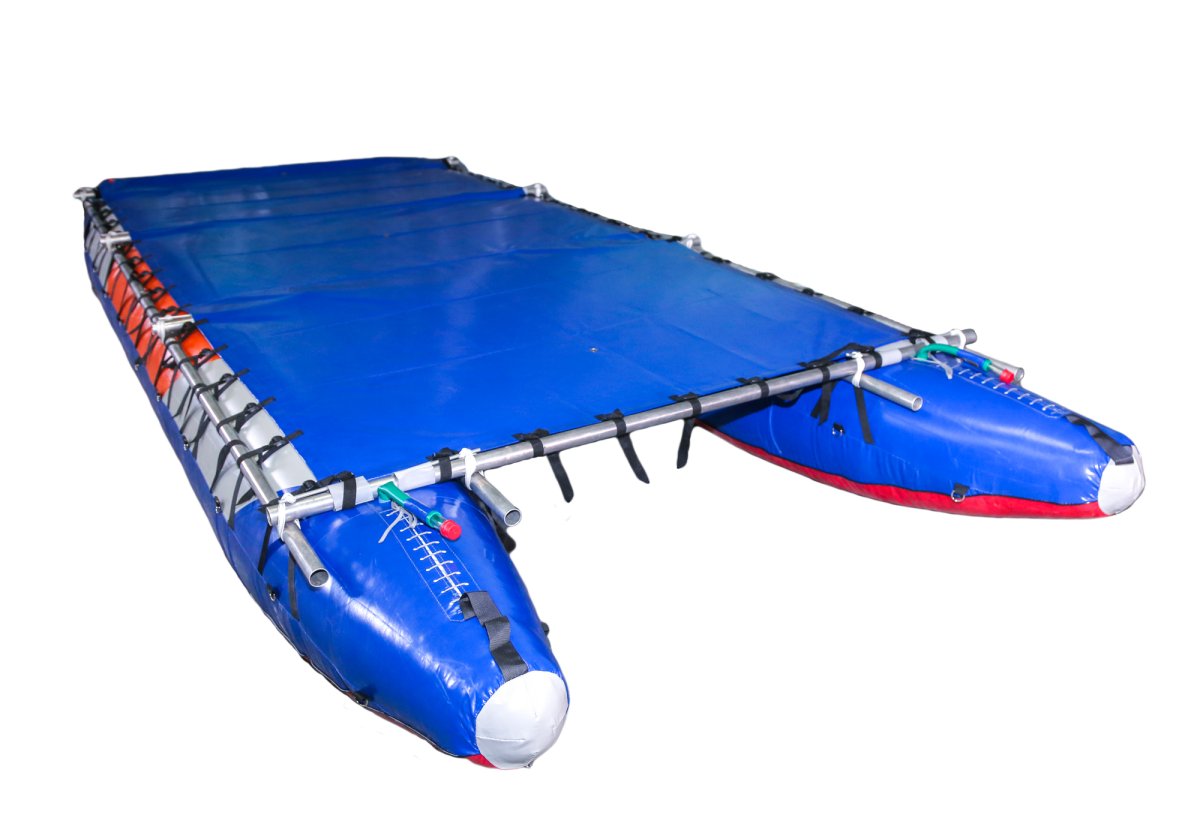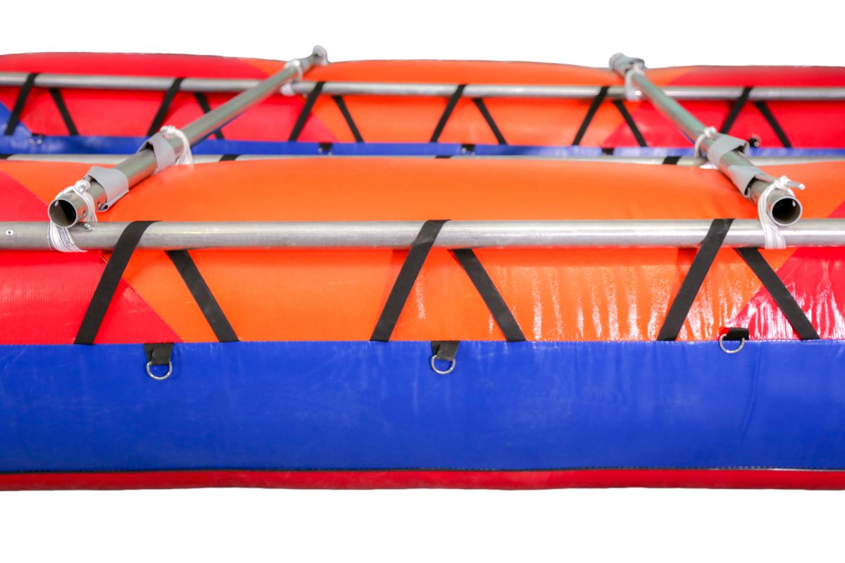 - Баллоны катамарана двухслойной конструкции состоят из гондол и внутренних баллонов. Гондолы сделаны полностью из ткани с ПВХ покрытием, дно из ткани плотностью 900г/м.кв, бок и верх из ткани плотностью 650г/м.кв. Надежная и прочная ткань ПВХ предохраняет от повреждения внутренние баллоны, не намокает от воды, легко моется