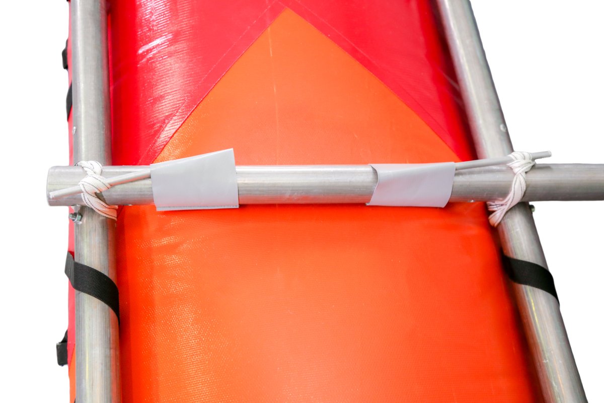 2. Кроме петель из стропы на боковых сторонах гондол дополнительно расположены металлические варные полукольца для шнуровки и закрепления рамы к катамарану. Данная система прикрепления рамы позволяет устанавливать на катамаран раму, сделанную из подручного материала
