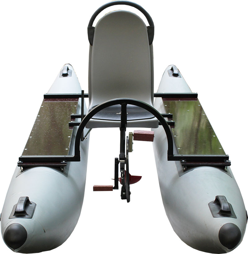 На двухместный катамаран установлены два кресла, один или два (по заказу) педальных привода с гребным винтом. Гребной винт выгодно отличают данный катамаран от других подобных конструкций с лопастными колёсами по КПД, а соответственно и скорости движения судна.