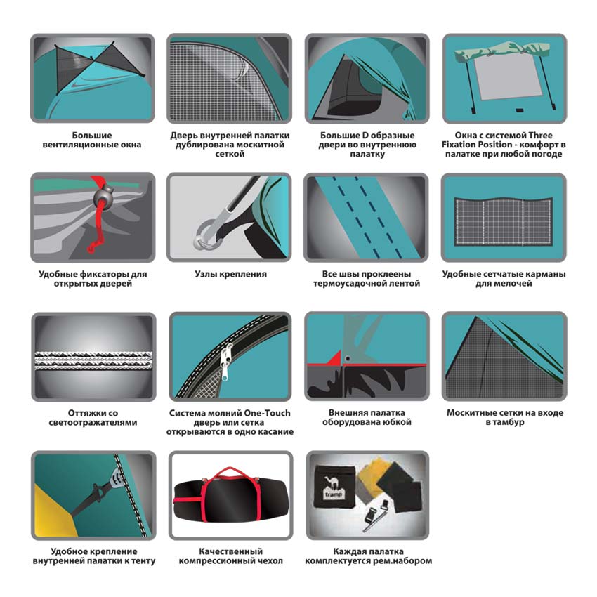 - Входы в тамбур и спальное отделение продублированы высококачественной москитной сеткой, способной защитить даже от самой мелкой мошки