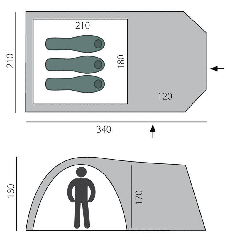 Палатка BTrace Element 3 – кемпинговая палатка. Палатки этой серии рассчитаны на семейный отдых, отдых большой компанией. Высокие, просторные, с тамбуром, оборудованные москитными сетками – это лучшее, что можно предложить любителям кемпинга.