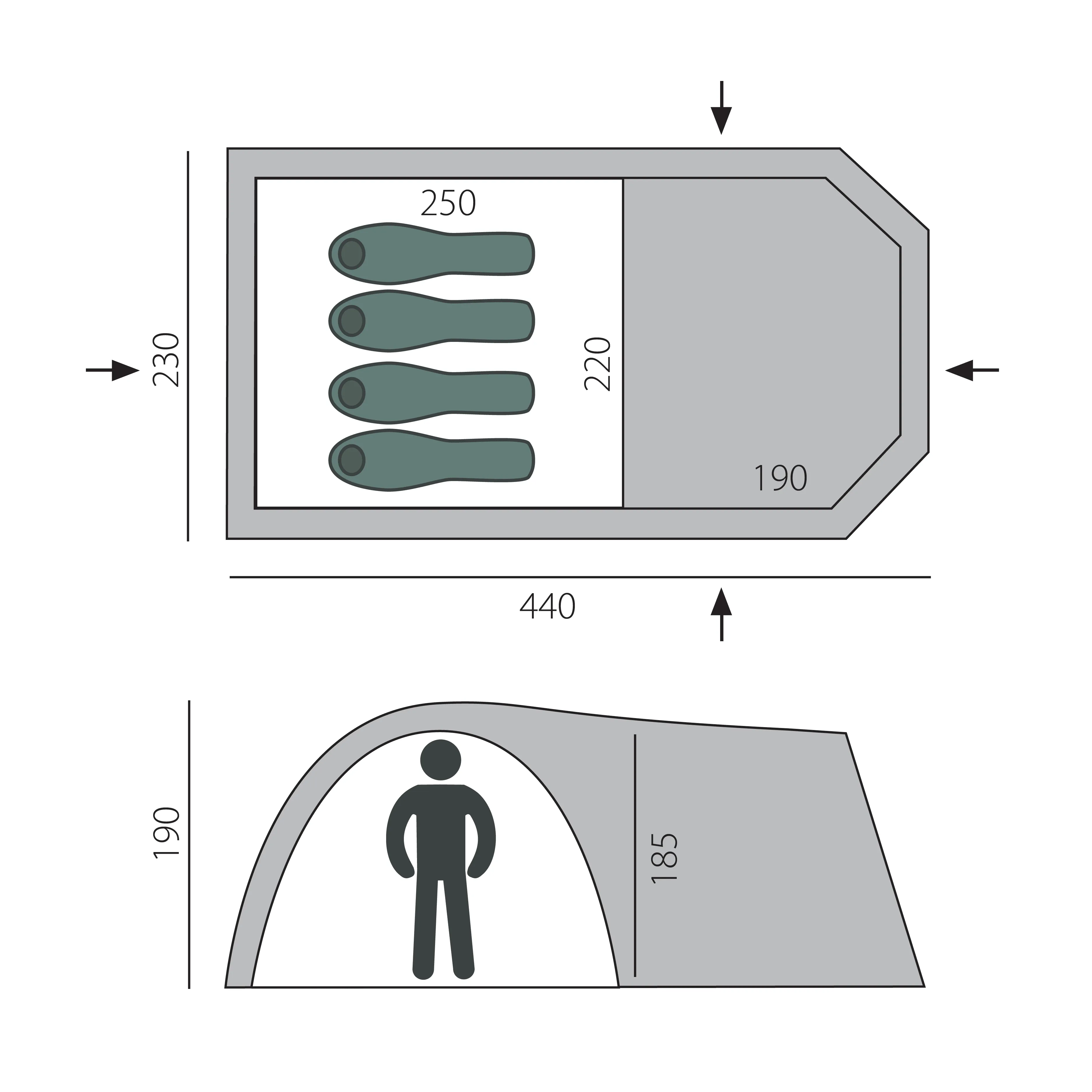 Палатка BTrace Osprey 4 входит в серию Camping Line. Палатки этой серии рассчитаны на семейный отдых, отдых большой компанией. Высокие, просторные, с тамбуром и несколькими отделениями, оборудованные москитными сетками и большими, надежные – это лучшее, что можно предложить любителям кемпинга.