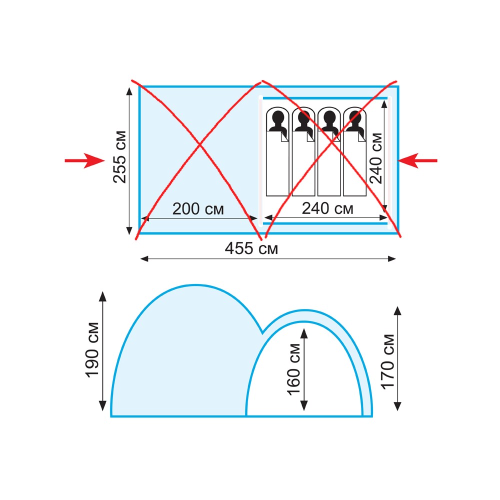 Внешний тент палатки устойчив к ультрафиолетовому излучению