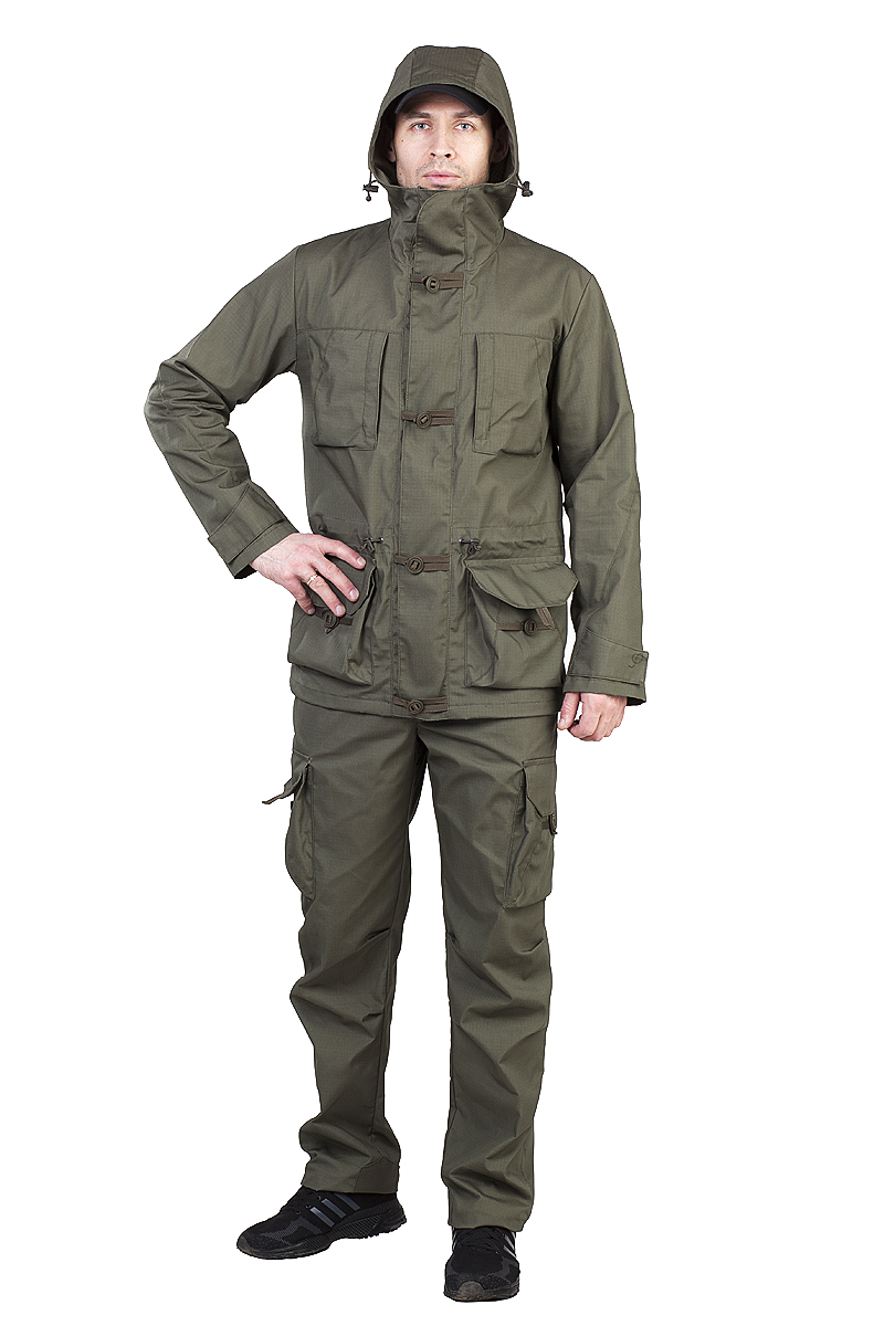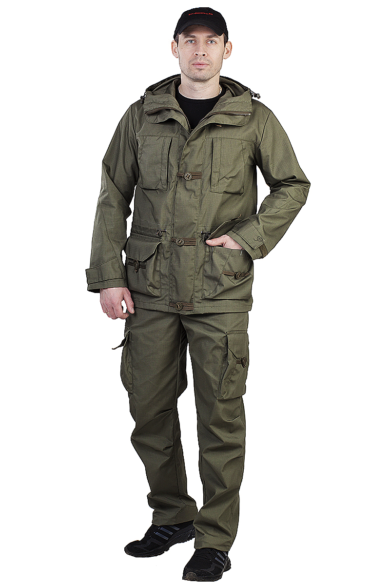 Мужской костюм Арти для туризма, рыбалки и охоты из прочного ветрозащитного, водо-грязеотталкивающего, воздухопроницаемого материала с капюшоном.