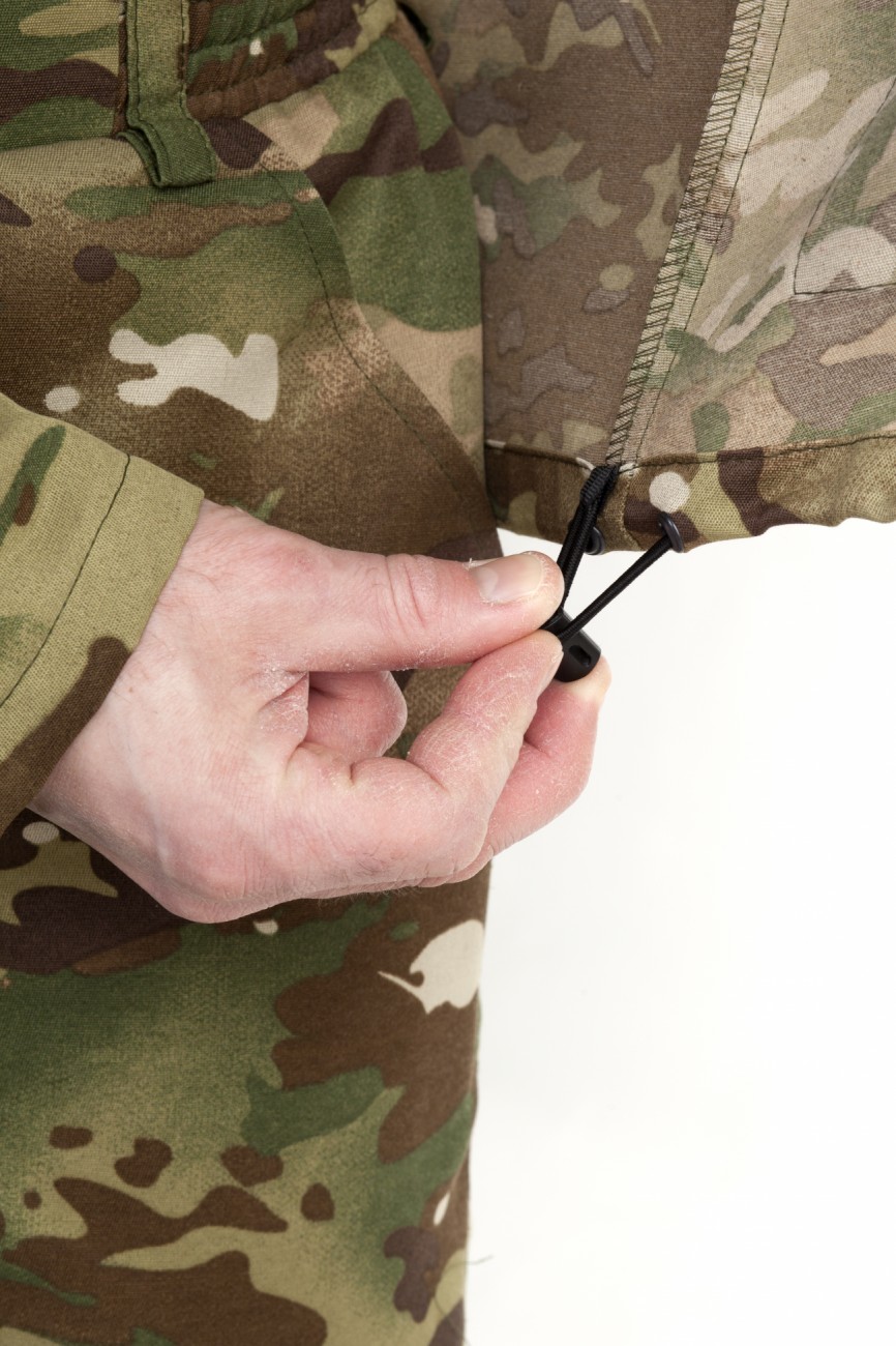 - Утяжка по линии низа изделия и по обзору капюшона