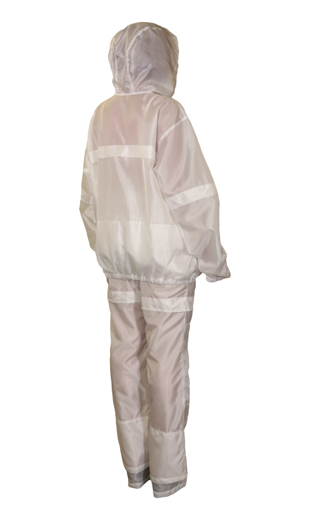 - Легкий, дышащий костюм можно одевать поверх одежды даже в жаркий день. Гладкая поверхность ткани уменьшает возможность зацепления клеща. Клещ хорошо заметен на светлой ткани.
