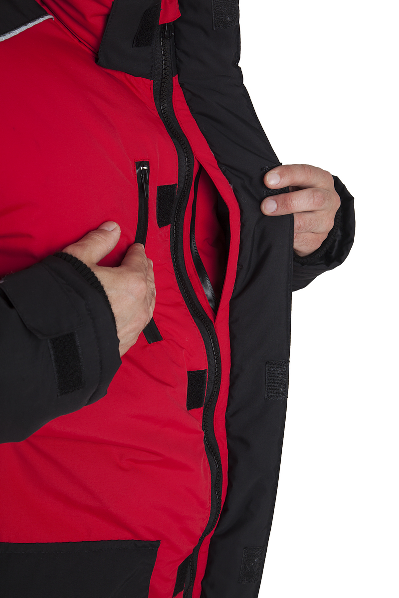 - Центральная застёжка на молнию с ветрозащитной планкой на ленте велкро