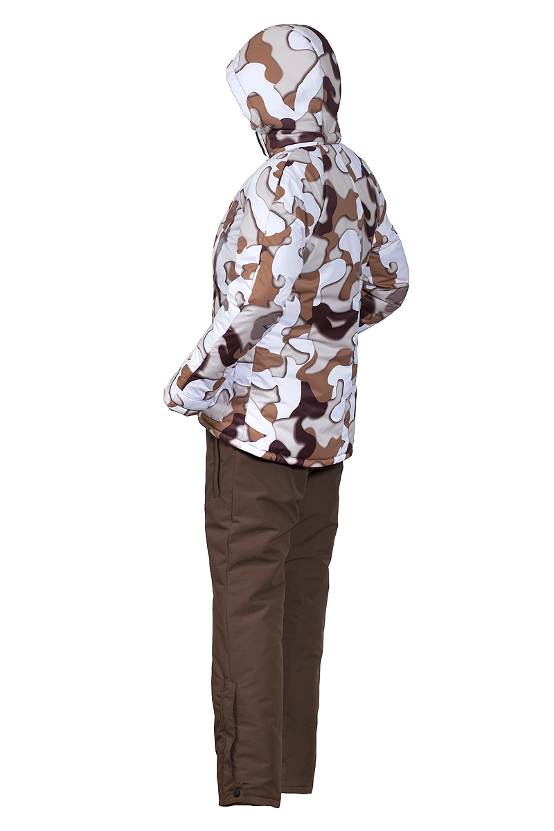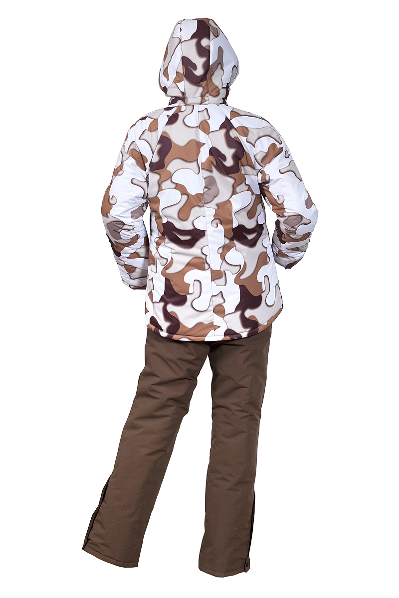 Утеплённый комфортный костюм для охоты, рыбалки и активного отдыха. Выполнен из ветронепродуваемой и водонепроницаемой прочной и стойкой к износу ткани, отводящей внутреннюю влагу наружу. Предназначен для защиты от ветра, атмосферных осадков, в зимнее время до -25, а возможно и в весенне-осенний период. Куртка на молнии с ветрозащитной планкой на кнопках. Капюшон анатомического кроя регулирующийся по краю обзора. Утеплённый полукомбинезон с завышенной талией. По объёму регулируется поясом в талии на утяжках, которые по спинке скрыты в кулисе. Отлично сидит на фигуре. Для удобства переобувания по низу штанин есть расширитель на молнии с планкой.