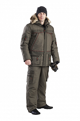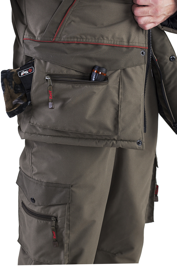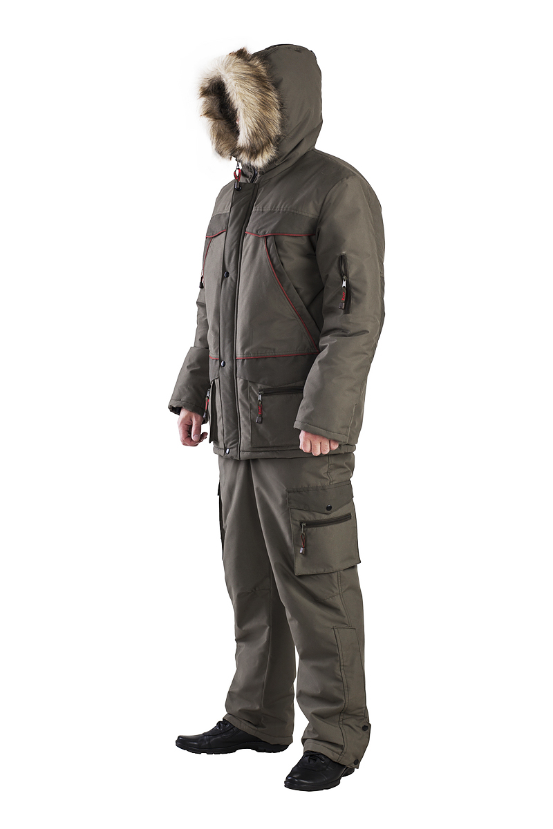 Практичный костюм предназначен для любителей рыбалки, охоты и активного отдыха в зимнее время. Это костюм классического кроя с длинной курткой и полукомбинезона, изготовленных из современных ветрозащитных и влагозащитных материалов. В качестве верхнего покрытия используется качественная мембранная ткань микрофибра (5000\5000). Костюм с многофункциональными карманами. Удобный и тёплый капюшон в форме трубы, с отстёгивающейся меховой опушкой из искусственного меха, защищающий от ветра и холода при самых низких температурах. Комбинезон с высокой спинкой, регулирующимися лямками, разъёмом по низу брюк. Утеплитель обеспечивает тепло и комфорт даже в условиях продолжительной малоподвижности.