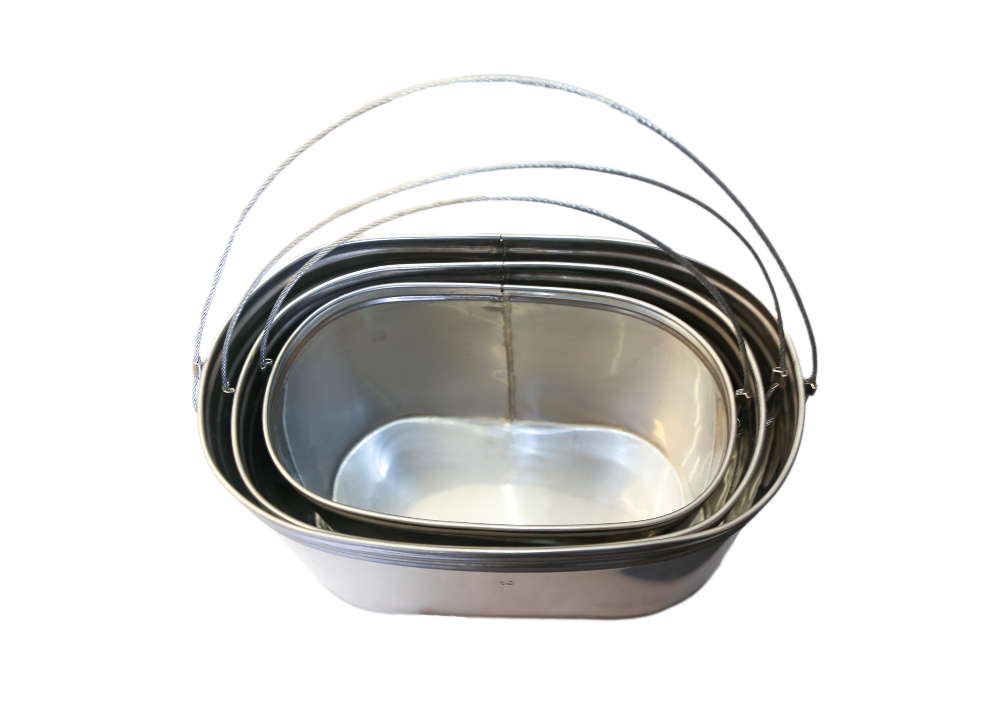 - При составлении набора из двух или трех котелков, которые вы хотели купить для похода необходимо учесть, что котелки овальные вставляются друг в друга по принципу "матрешки" через 1 литр. Например - котелок 2литра вставляется в котелок 4литра, 4литра в котелок 6 литров, котелок 3литра в котелок 5литров, котелок 5литров в котелок 7 литров и т.д. Котлы литражом, следующим друг за другом, вставляются друг в друга не полностью, так как показано на фотографии №3